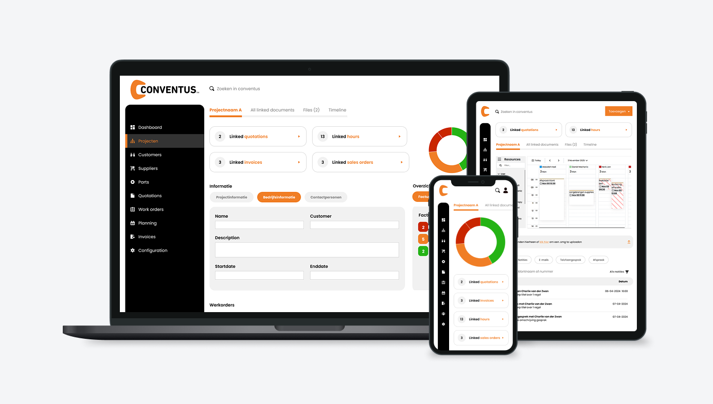 Onze ERP-modules zijn speciaal ontworpen voor de unieke behoeften van de installatie- en assemblage branche, met naadloze integratie en eenvoudige koppeling aan bestaande systemen. Van projectmanagement tot voorraadbeheer, wij bieden alles wat je nodig hebt voor een soepele bedrijfsvoering, allemaal binnen één gebruiksvriendelijk platform. Kies voor Conventus en til jouw bedrijf naar een hoger niveau van succes.